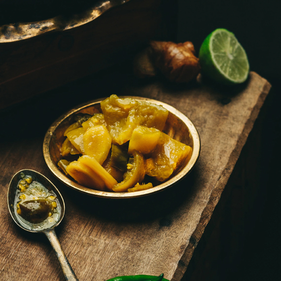 Zesty lemons, fiery green chilies, and invigorating ginger unite in this bold and refreshing pickle, adding a punch of flavour to your palate and a zestful kick to your dishes.